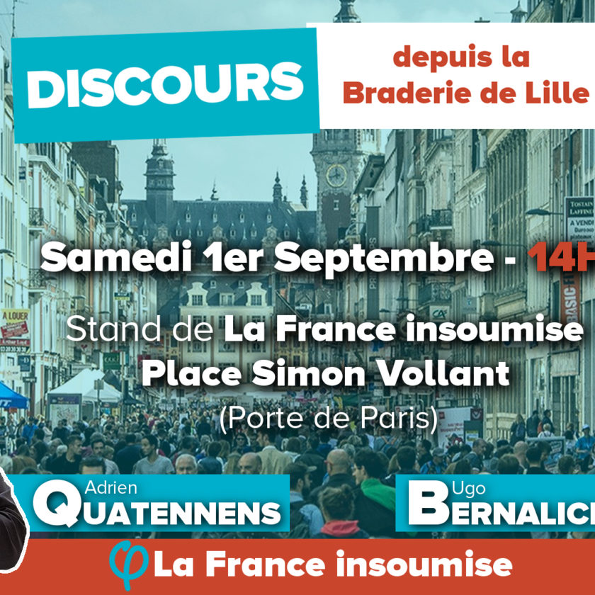 La France insoumise sera présente (une nouvelle fois) à la traditionnelle Braderie de Lille (1er et 2 septembre). Rendez-vous Place Simon Vollant (Porte de Paris). À cette occasion, j’y prononcerai un discours de rentrée aux côtés de mon collègue Ugo Bernalicis. Le programme du week-end sur le Stand de la France insoumise : Le […]