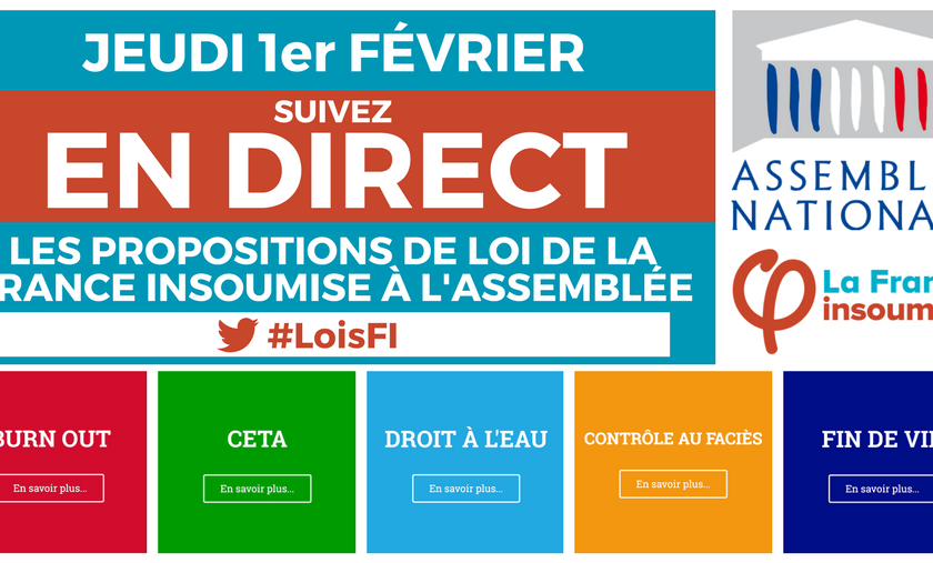 « Proposition de loi relative à l’euthanasie et au suicide assisté, pour une fin de vie digne » Présentée par : Mme Caroline FIAT, M. Alexis CORBIÈRE, Mme Danièle OBONO, et les membres du groupe La France insoumise. Pour retrouver la proposition de loi : https://lafranceinsoumise.fr/app/uploads/2018/01/EUTHANASIE.pdf